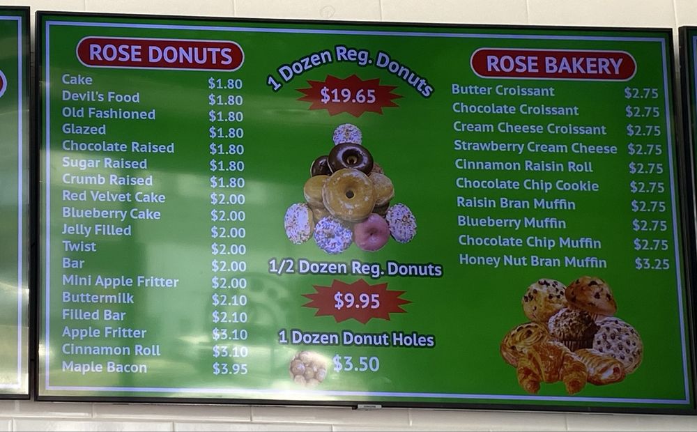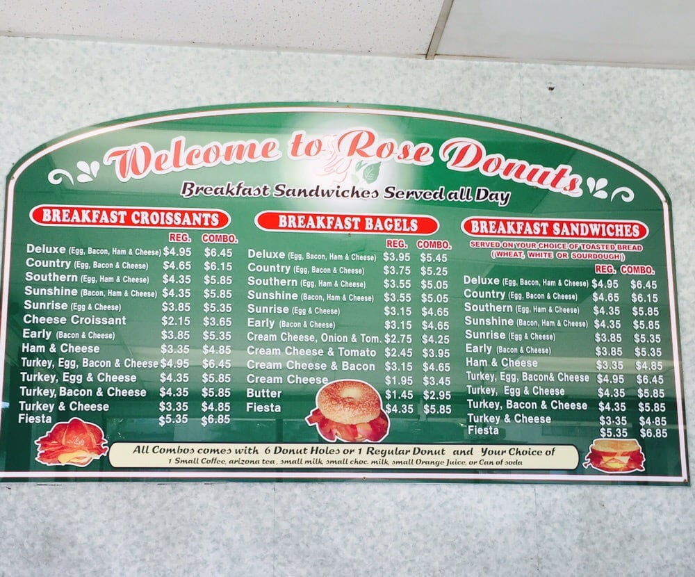 Introducing Rose Donuts, a local gem in San Diego known for their top-notch plain glazed donuts. Customers rave about the friendly staff, fresh and natural donut flavors, and the welcoming atmosphere that makes you feel like family. The extensive menu offers a variety of traditional donut options, along with coffee drinks and breakfast items like warm ham & cheese croissants. The dining area is quiet and perfect for a quick grab-and-go or a leisurely sit-down. Rose Donuts prides itself on being a mom-and-pop shop, serving up classic favorites without any frills. With accessible parking, vegan options, and a reputation for the best donuts in Southern California, Rose Donuts is a must-visit spot for donut lovers looking for a simple yet satisfying treat.